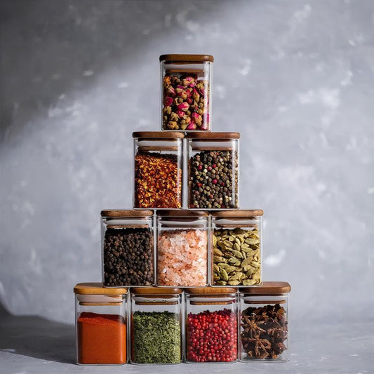 Potes para Temperos e Condimentos de Vidro e Bambu Hermético