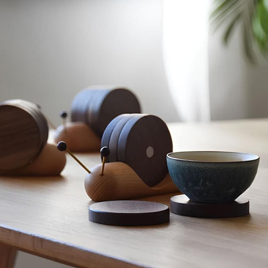 Porta copos e Descanso de copos de Madeira em Formato de Caracol