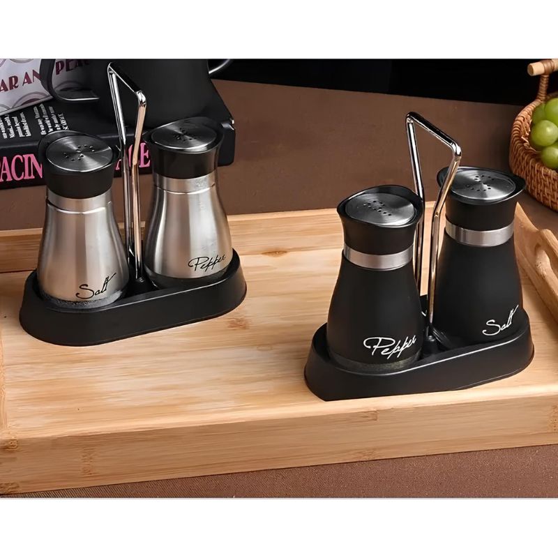 Conjunto de Saleiro e Pimenteiro com Suporte – Design Moderno e Sofisticado