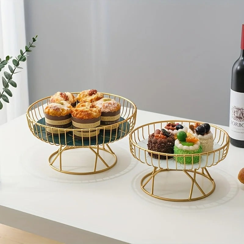 Fruteira de Mesa Redonda – Sofisticação e Versatilidade com Toque de Ouro